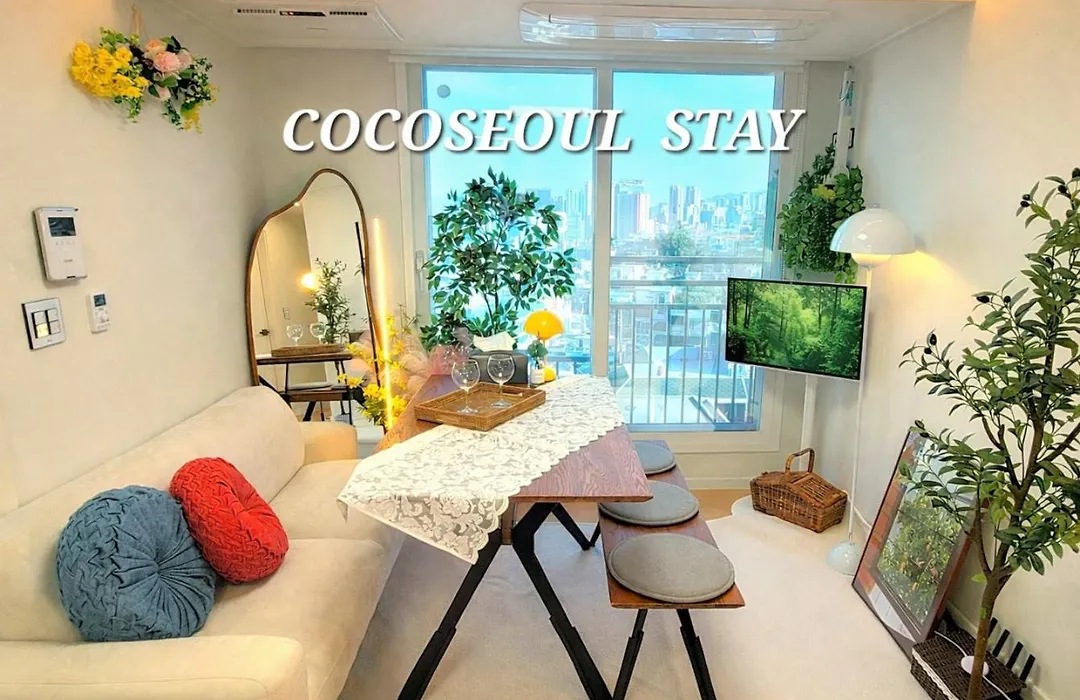 Situé à 3 km du palais de Gyeongbokgung, Appartement Coco Séoul comprend un balcon et un coin salon donnant sur la ville.